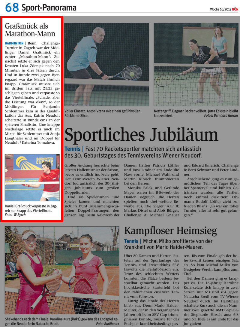 GRAßMÜCK ALS MARATHON-MANN / Challenge-Turnier in Zagreb
