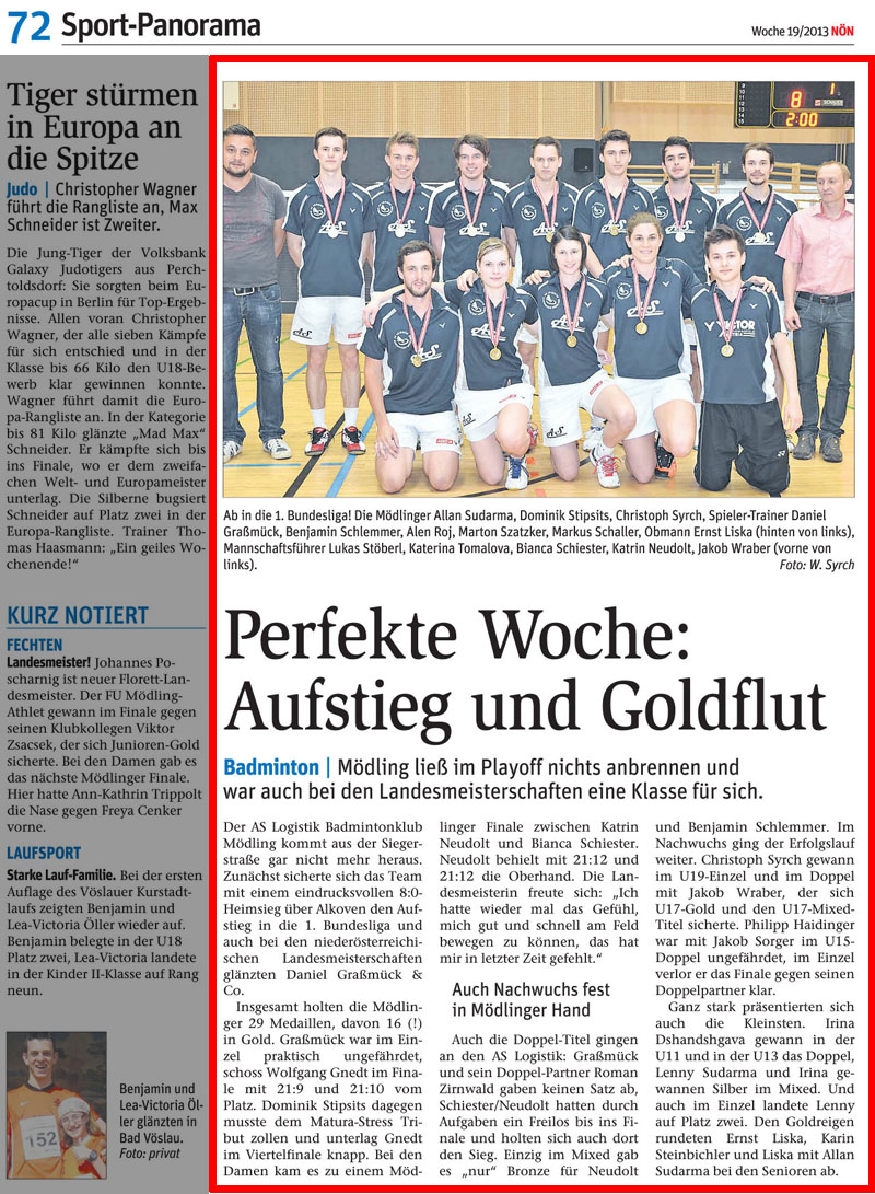 PERFEKTE WOCHE: AUFSTIEG UND GOLDFLUT / Mödling ließ im Playoff nichts anbrennen und war auch bei den Landesmeisterschaften eine Klasse für sich.