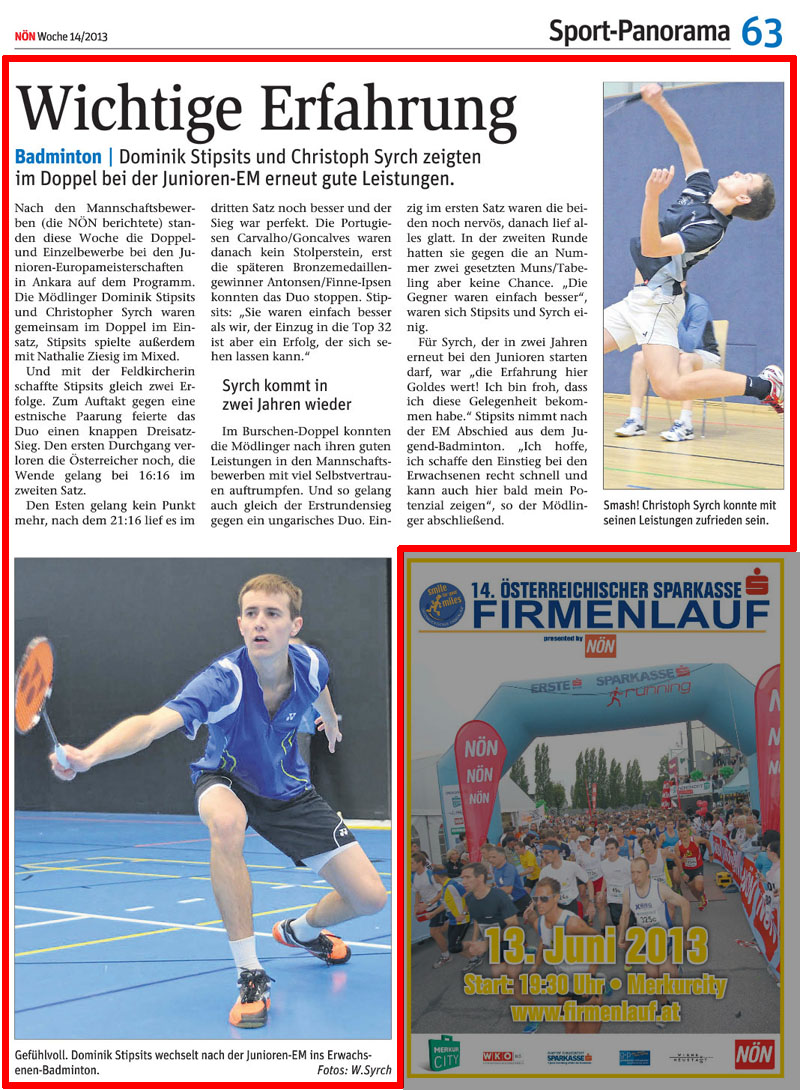 MÖDLINGER DUO SCHNUPPERT EM-LUFT / Dominik Stipsits und Christoph Syrch sind bei der Junioren-EM im Einsatz, im Team kam bereits das Aus.