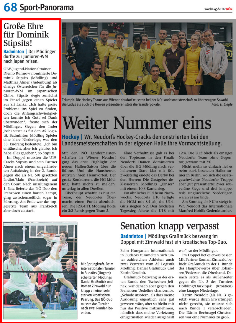GROßE EHRE FÜR DOMINIK STIPSITS / Der Mödlingerdurfte zur Junioren-WM nach Japan reisen.
