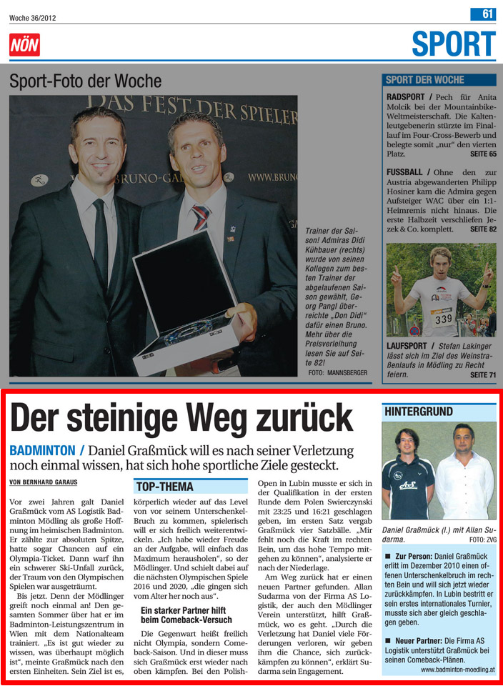 DER STEINIGE WEG ZURÜCK / Daniel Graßmück will es nach seiner Verletzung noch einmal wissen, hat sich hohe sportliche Ziele gesteckt.