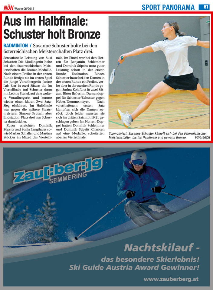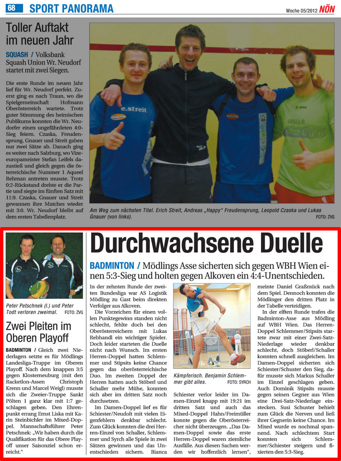 13.02.2012 / 09:00Badminton Mödling siegt gegen Meister Feldkirch