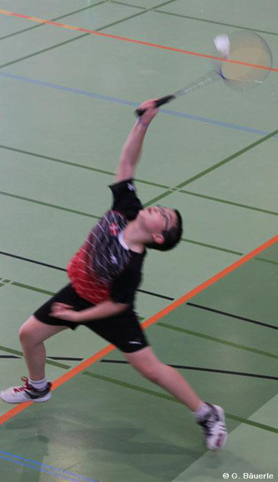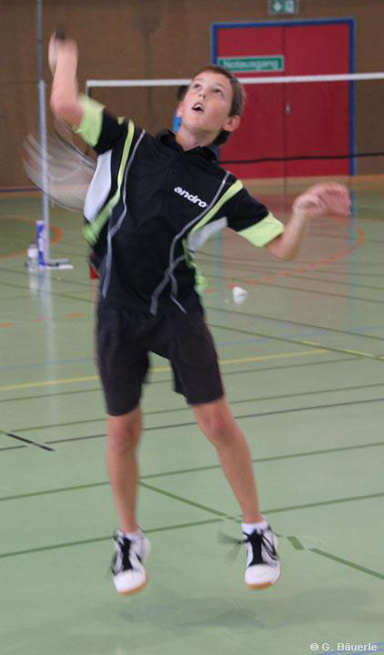 Michael Tomic als U11-Spieler gewann in der U15 spielend seine ersten drei Spiele ohne Mühe und stand somit im Halbfinale. Dort ließ er seinem Gegner Lukas Hödl aus Wien keine Chance und gewann ganz klar in zwei Sätzen mit 21:10/21:5, als wäre das ganz selbstverständlich.
