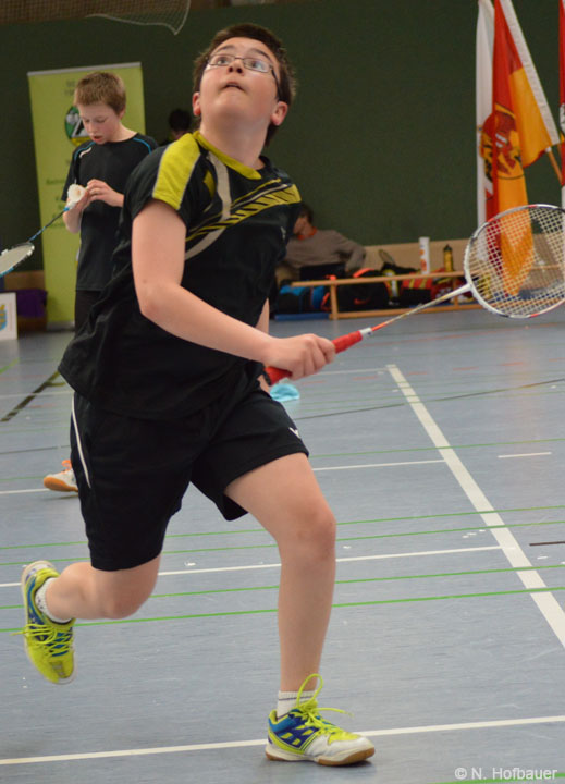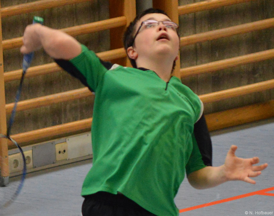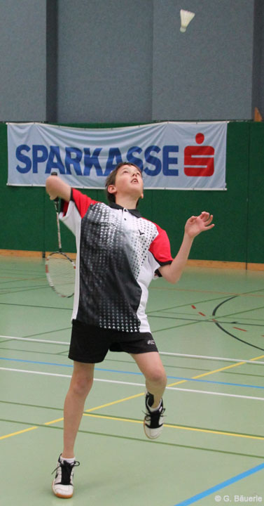 Tobias Bäuerle spielte gegen Jan Stampfli von Badminton Point Vienna, gegen den er beim letzten Schülerturnier Mitte März in Weiz noch in 3 Sätzen verloren hatte wie ausgewechselt und siegte ganz souverän mit 21:9/21:13. Danach war leider gegen die Nr. 3/4 Tobias Rudolf aus Graz Endstation. Doch auch hier zeigte er sein Können und konnte teilweise gut mithalten.
