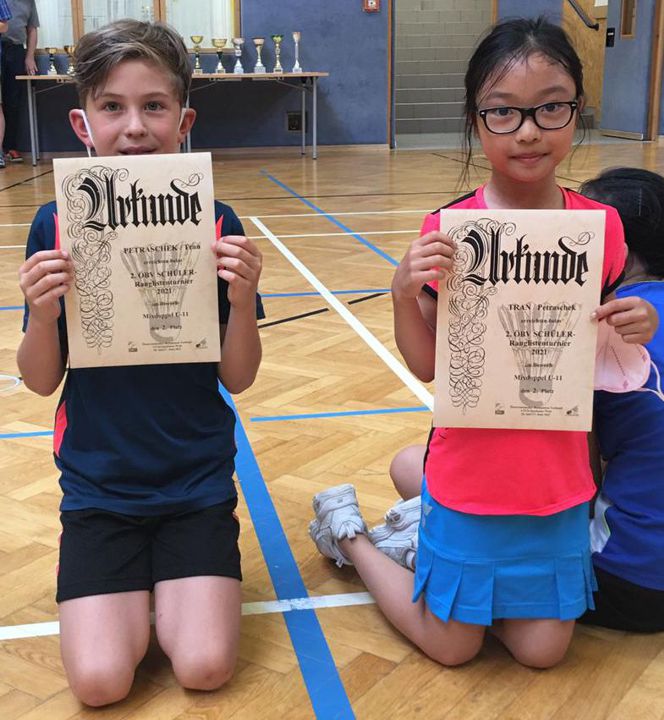 Finn und Lafaye holten sich gleich zu Beginn den guten 2. Platz im Mixed Doppel U11, nach klaren Siegen war im Finale gegen die starken Vorarlberger Moritz Bürger und Lisa Moosbrugger Endstation, jedoch ein sehr starker Einstieg ins Turnier.
