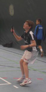 Lenny hatte Lospech und musste gleich gegen den späteren Gewinner Mathias Wallner antreten. der jüngste Mödlinger spielte dennoch beherzt und schaffte bemerkenswerte viele Punkte. Ergebnis: 15:21/16:21.