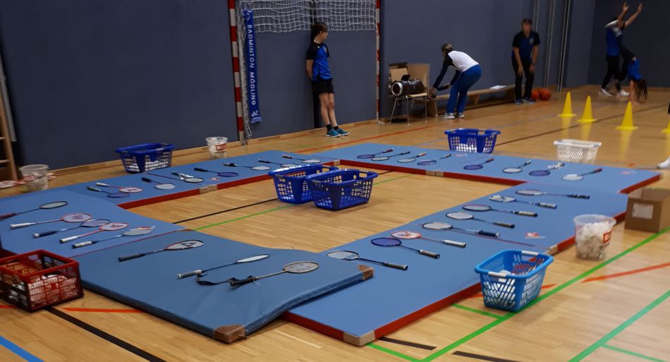 Eine Station wurde von Badminton Mödling betrieben. Im „Tonnenbadminton“ kommt es darauf an, innerhalb einer Minute so viele Bälle wie möglich in die Kiste zu schlagen. Sofern noch vor den Stationswechsel noch Zeit blieb konnte noch mit Federball und Schläger miteinander gespielt werden.