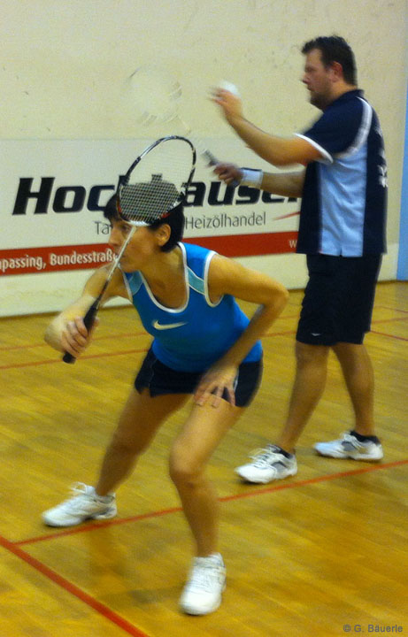 DE: Trotz aller Routine hatte unsere Malou keine Chance bei ihrer blutjungen Gegenerin und die klare Niederlage von 9:21 und 6:21 kam für sich keinesfalls überraschend. "Es hat trotzdem Spaß gemacht", war Malous sportliches Resümee am Ende.