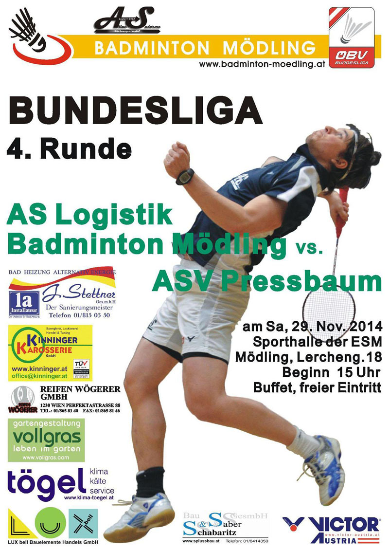 Am Samstag, 29.11., findet in der Europahalle das NÖ Derby zwischen AS Logistik Badminton Mödling und ASV Pressbaum statt. Zwar gehen wir von der Tabellenposition als klarer Favorit in die Partie, aufgrund einiger Ausfälle erwarten wir dennoch einen harten Kampf!