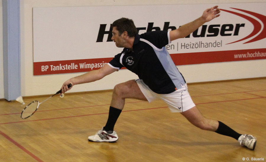 HE 1: Philipp Graßmück kämpfte tapfer gegen den übermächtigen Gegner und bot den Zuschauern ein tolles Spiel, setzte sich selbst aber zu sehr unter Druck und musste die Spielstärke und Routine von Markus Kolhauser anerkennen und sich mit 13:21/14:21 geschlagen geben.