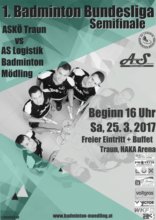 Am 1.April 17 fand das Rückspiel des Semifinales der Bundesliga zwischen AS Logisitk Badminton Mödling und ASKÖ Traun in der Europahalle in Mödling statt. Unsere Mannschaft musste sich nach tollem Kampf knapp mit 4:4 und aufgrund des schlechteren Satzverhältnisses geschlagen geben. Damit stellen die Oberösterreicher auf 2:0 in der Best-of-3 Serie, was gleichbedeutend mit unserem Ausscheiden im Semifinale ist.