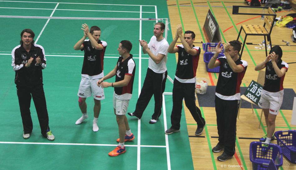 BL3r1617 6085hpWie erwartet, oder vielleicht besser gesagt wie befürchtet, wurde das Duell Tabellenführer gegen Tabellenschlusslicht alles andere als eine klare Angelegenheit. Wie bereits in Runde eins und zwei konnten wir auch diesmal wieder mit 2 souveränen 2 Satzsiegen in den Herrendoppeln (Daniel/Dominik, Andras/Luka) starten. Leider konnte unser Damendoppel in 3 umkämpften Sätzen nicht konstant genug auf seinem Top Niveau spielen, und musste sich knapp in 3 Sätzen geschlagen geben. Luka konnte mit einem souveränen 2 Satz Sieg auf 3:1 stellen, aber anders als in den ersten beiden Runden konnte Andras diesmal nicht “nachziehen”, und musste sich nach einer durchwachsenen Leistung leider in 3 Sätzen geschlagen geben. Nachdem für Bianca gegen die starke Ema Cizelj im Einzel erwartungsgemäß nichts zu holen war, konnte Benni im 3. HE erneut eine starke Leistung bringen und gegen Markus Zvonek einen souveränen 2 Satz Sieg einfahren!