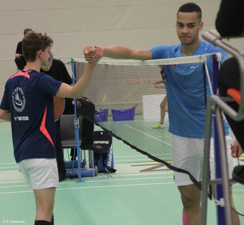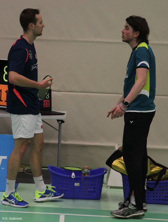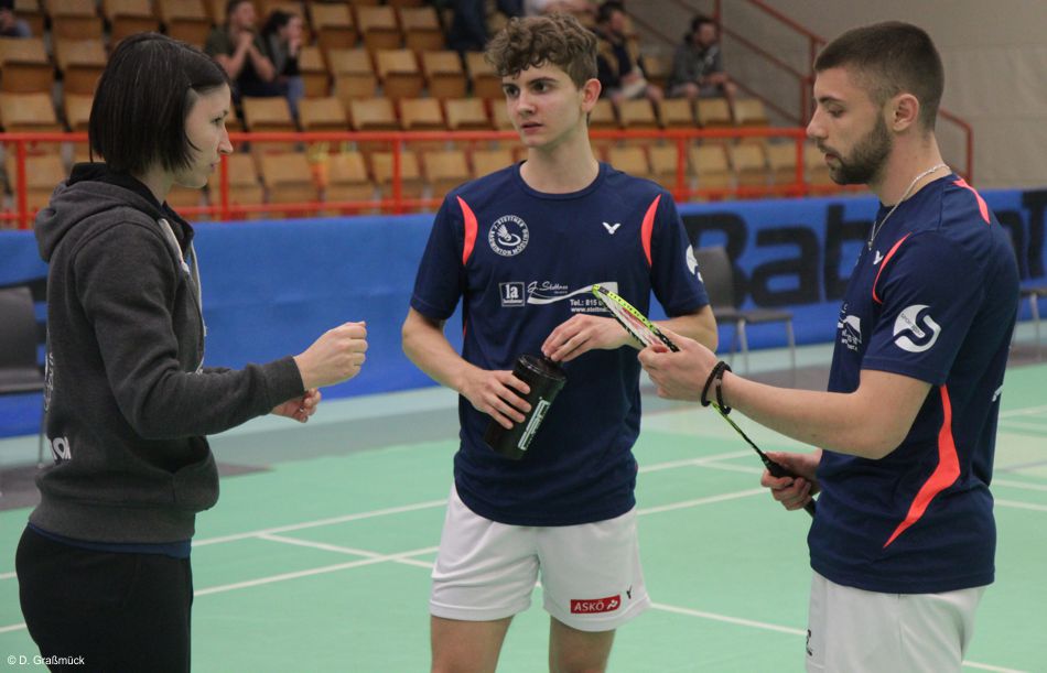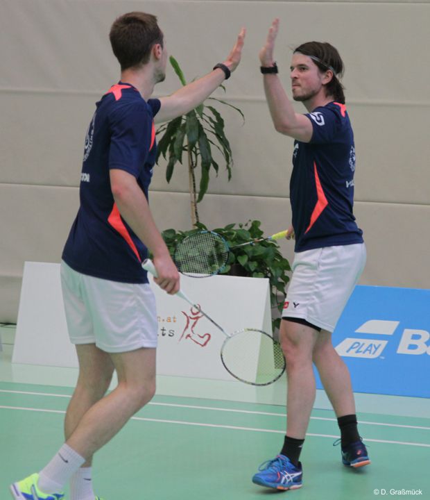 Mit einem nicht erwarteten, aber doch erhofften Sieg im 1. HD gelang dem BL-Team ein optimaler Start in die Begegnung. Daniel Graßmück/Dominik Stipsits nahmen gegen Jürgen Koch/Peter Zauner Revanche für die letzte Niederlage im Jänner 2019 und besiegten sie mit 21:18/15:21/21:19.