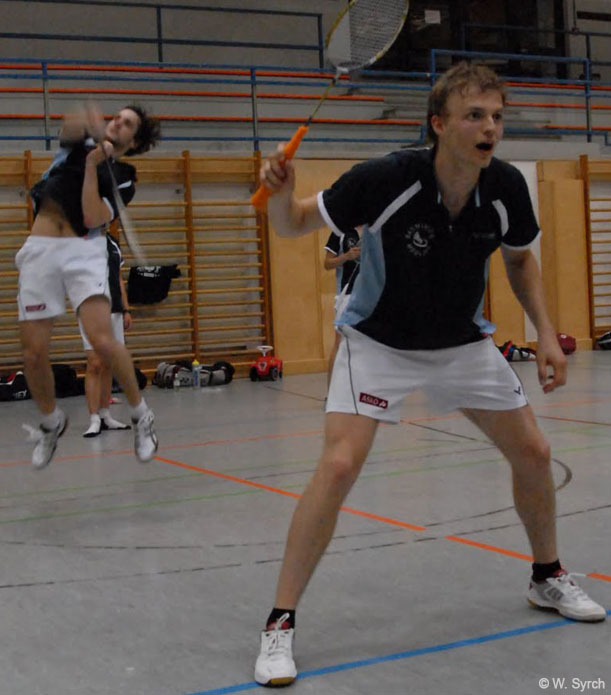 Sowohl Lukas im HE 1 gegen Peter Hofmann (21:11, 21:12) als auch Thomas im HE 2 gegen Michael Hofmann (21:9, 21:7) gewannen jeweils glatt in 2 Sätzen.