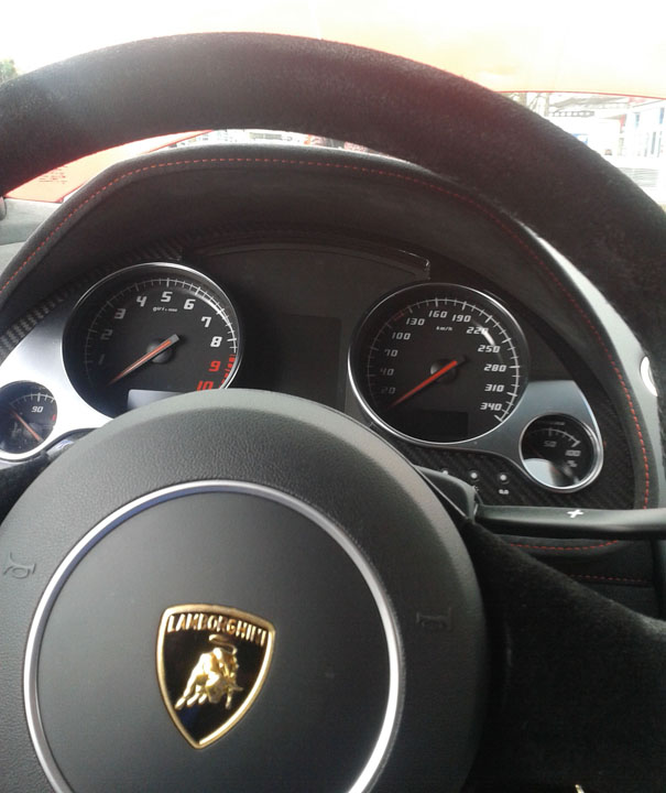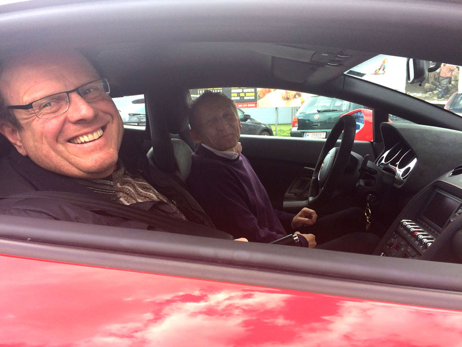 wurde am Karfreitag, 03.04.2015 12:00 – 13:00 Uhr eingelöst, rechtzeitig vor seinem 52. Geburtstag. Aus dem „Ferrari F335“ wurde ein „Lamborghini Gallero“, was der Freude an der Probefahrt absolut keinen Abbruch tat.