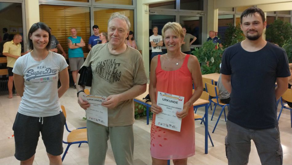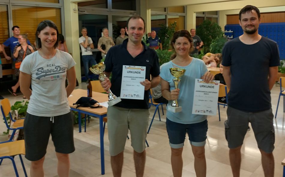Bedingt durch den vollen Kalender und kurzer Vorlaufzeit der wiedereröffneten Saison fand das diesjährige Saisonabschlussturnier heuer an einem Dienstag, dem 29.06.2021 in der ESM-Halle in Mödling statt. Trotz tropischer Bedingungen fanden sich von Badminton Mödling 18 Wettkampfbegeisterte Sportler ein, die dann in 9 nach Spielstärke zusammengelosten Paarungen gegeneinander antraten. Es gab wieder viele heiß umkämpfte und knappe Partien.