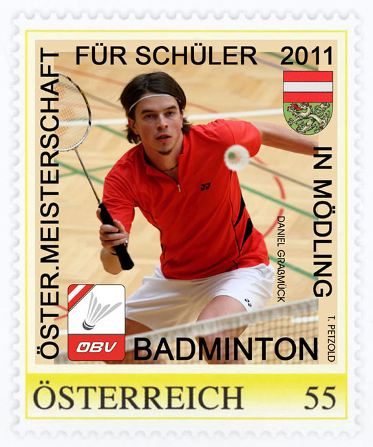 Das Briefmarken-Motiv zeigt ein Bild von Daniel Graßmück bei den letzten Bundesmeisterschaften 2010 in Klagenfurt, das Mödlinger Stadtwappen und das ÖBV-Logo.