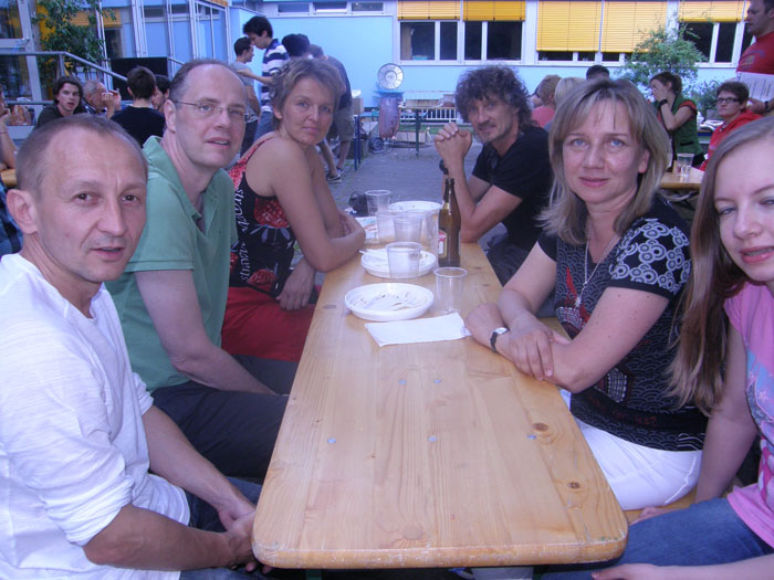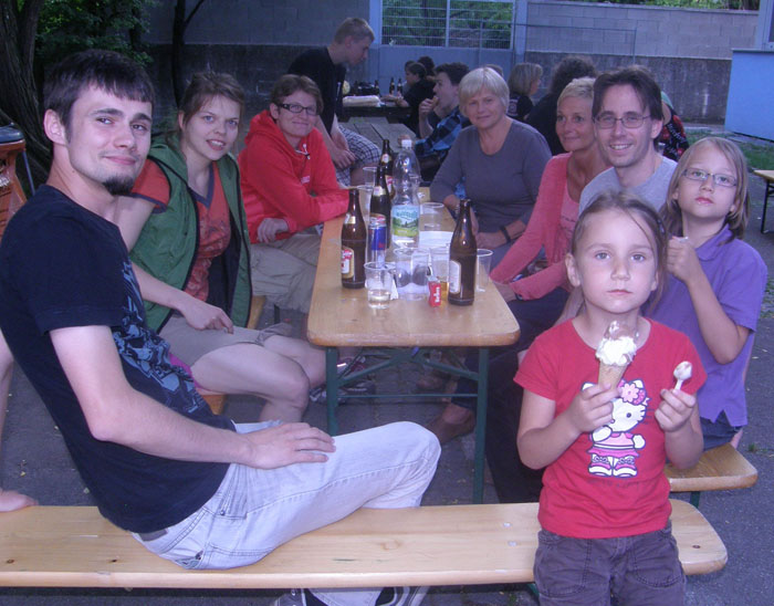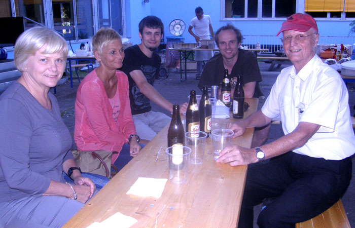 Jene Mitglieder und deren Freunde, Verwandte, Bekannte u.s.w., die nicht am Doppelturnier teilnehmen, kommen zur Grillparty um 18:00 Uhr in den Schulhof. Über den Eingang zur Sporthalle gelangen die Gäste in die Aula der Schule und von dort über den Speisesaal in den Schulhof.