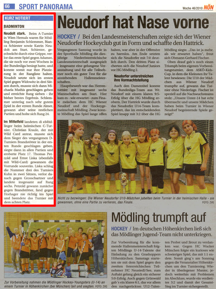 fand am So, 28.11.2010 in der Turnhalle der HTBLA in Krems statt. An diesem Tag wurden nur die Einzelbewerbe ausgetragen. Die Doppelbewerbe sollten am Mi, 08.12.2010 statt finden, wurden aber wegen zu wenigen Nennungen abgesagt. Am Einzelturnier nahmen 35 SchülerInnen teil, davon kamen neun aus Mödling.