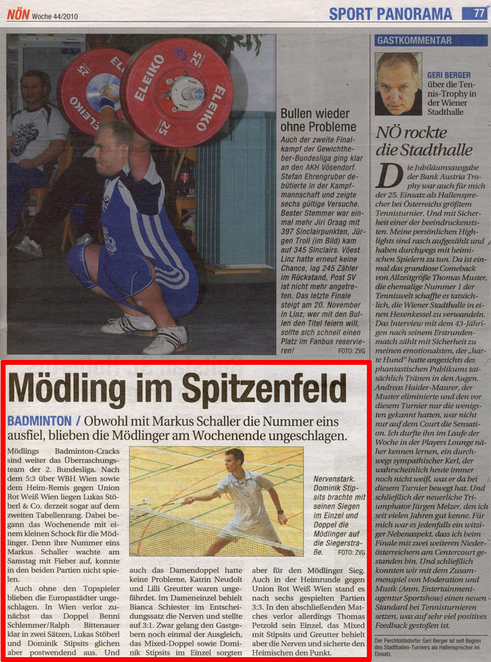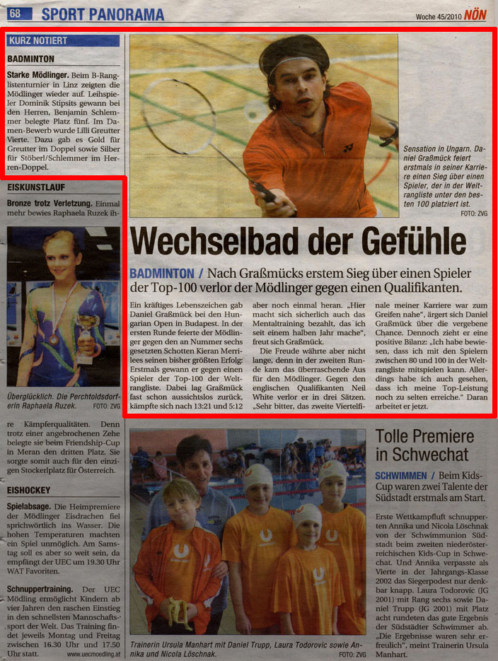 Aus Mödling nahmen Lukas Stöberl, Benjamin Schlemmer, der LS Dominik Stipsits/Simmering und die LS Lilli Greutter/Pressbaum teil und waren höchst erfolgreich.