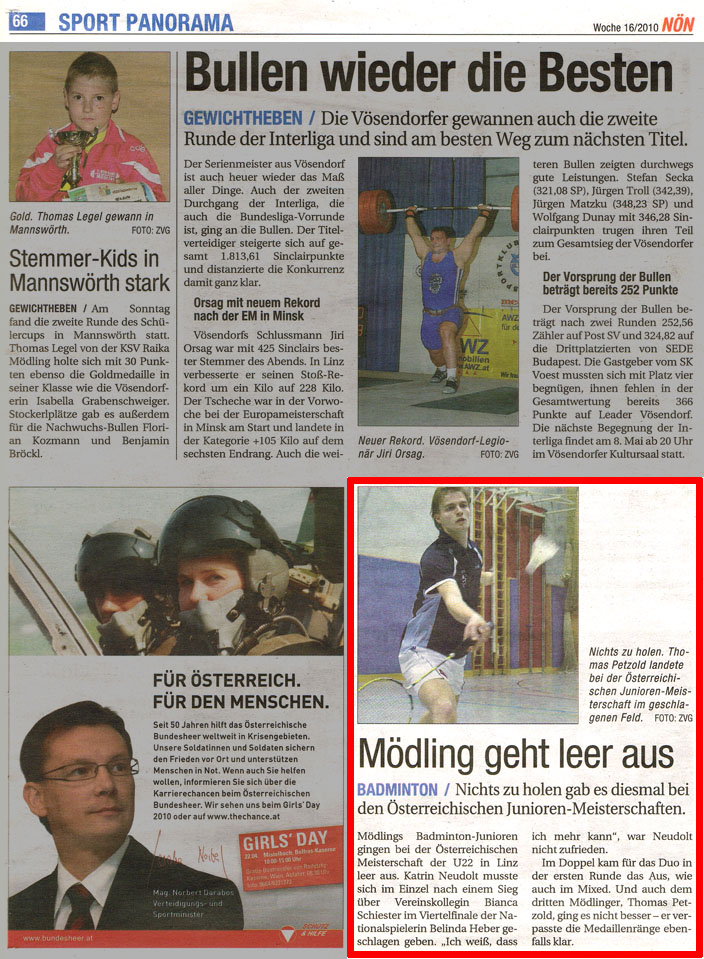 ERFOLG AUCH FÜR DAS MÖDLING II-TEAM
