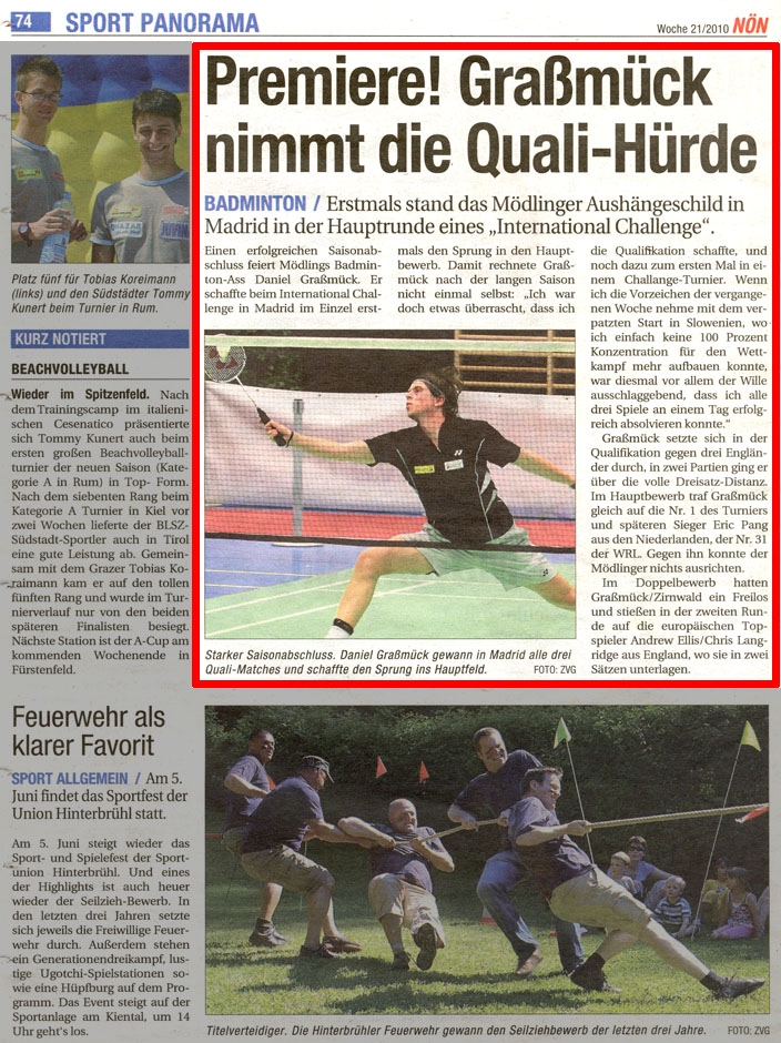Benjamin Schlemmer holte in Antwerpen sein bisher bestes Turnierergebnis. Erfolg auch für das Mödling II-Team.